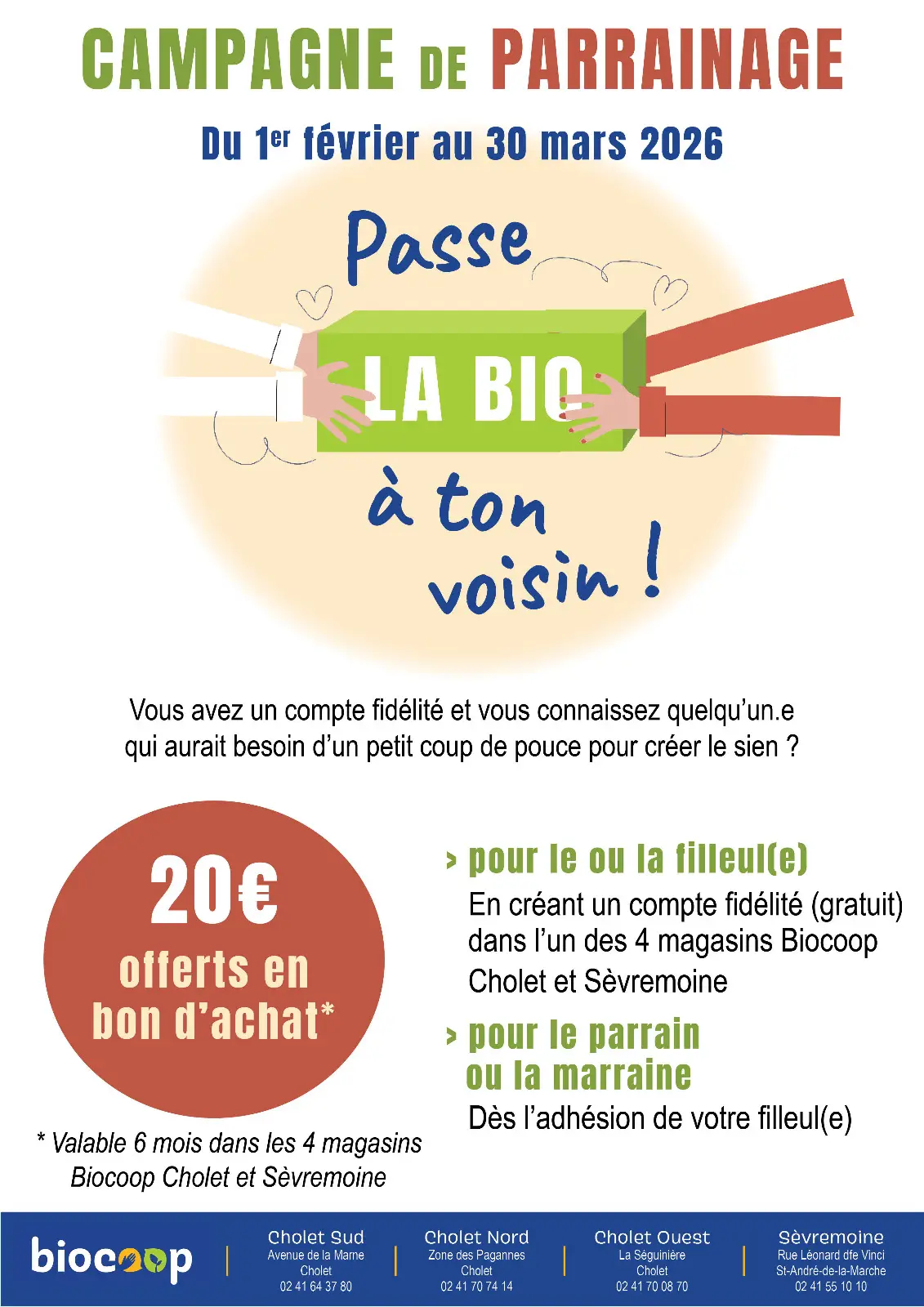 à valoir dans l'un de nos 4 magasins bio Biocoop Cholet Sud,