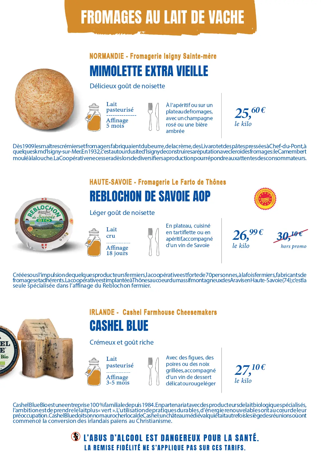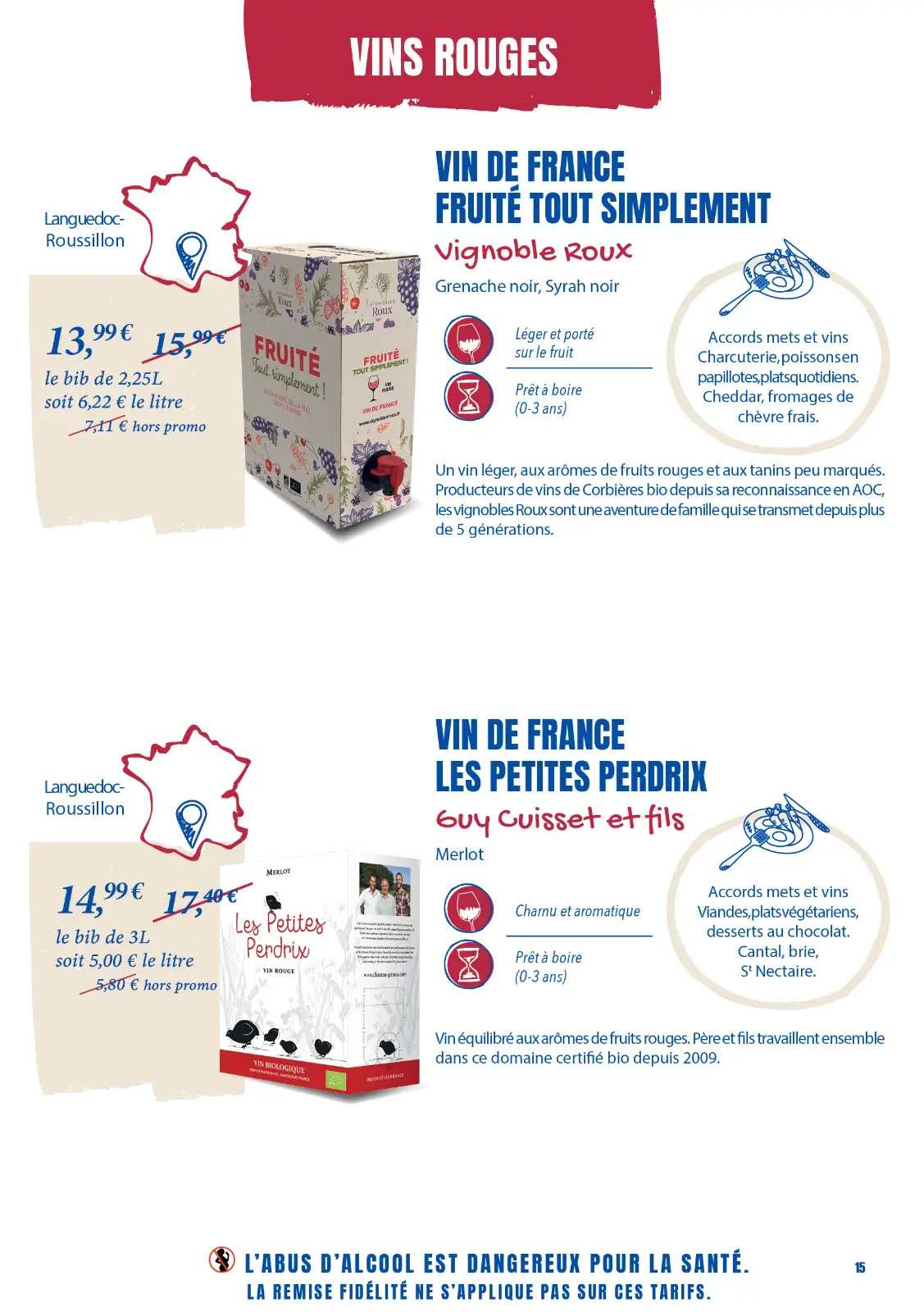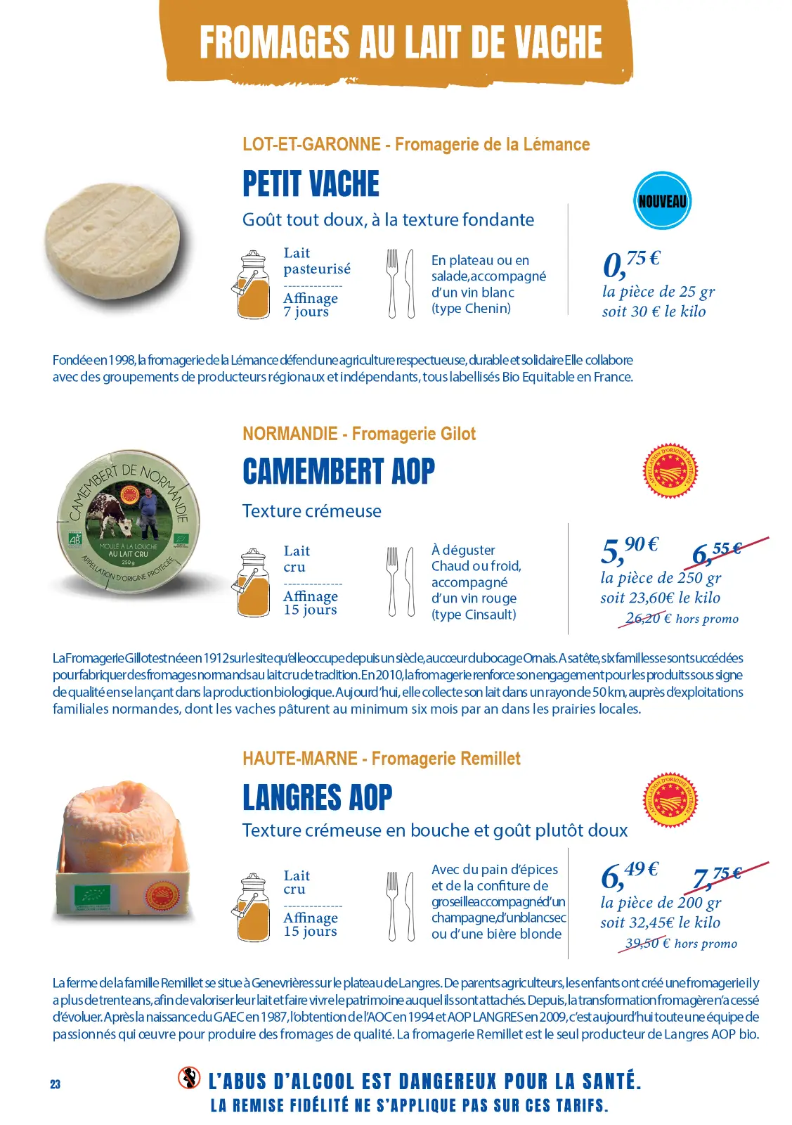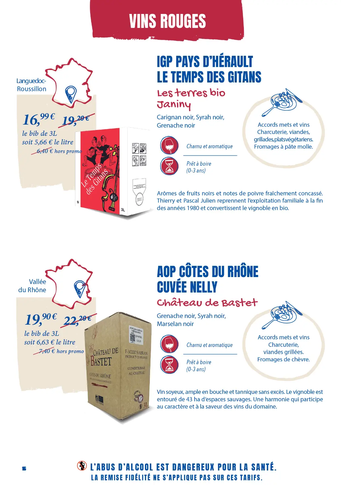 Notre sélection complète de vins et de fromages. La plupart sont en promotion, profitez-en !