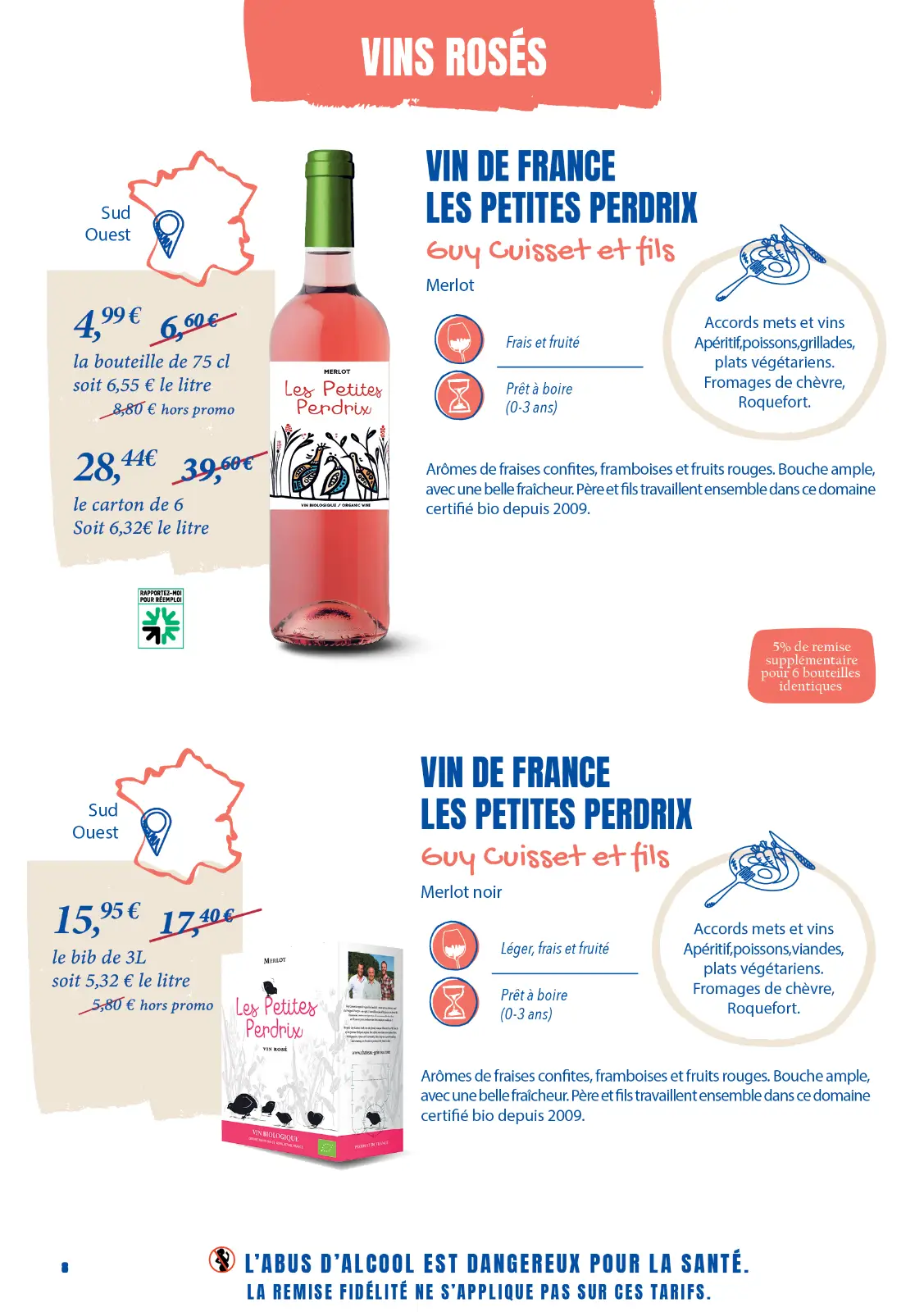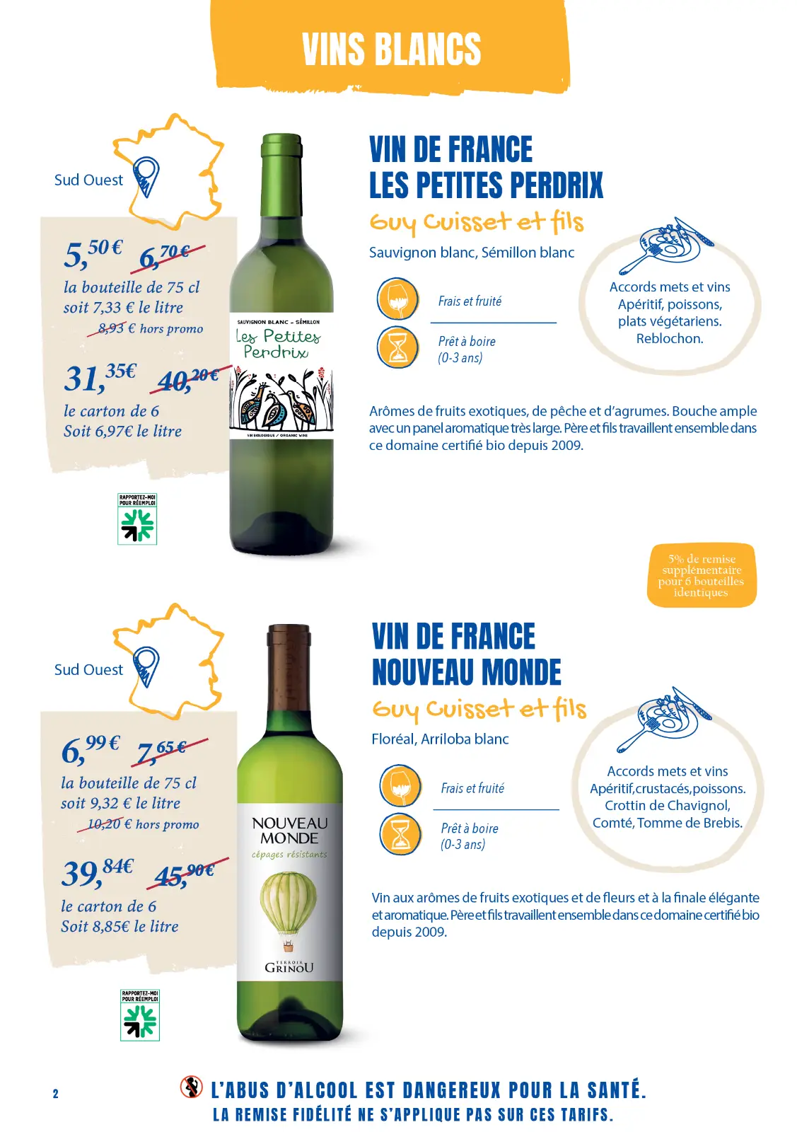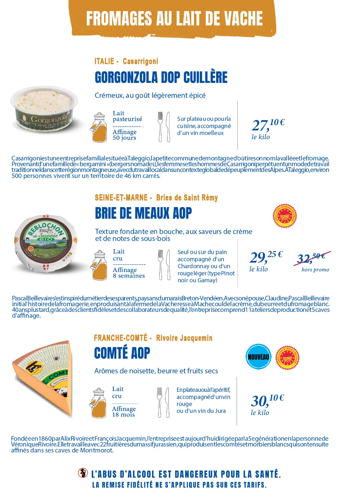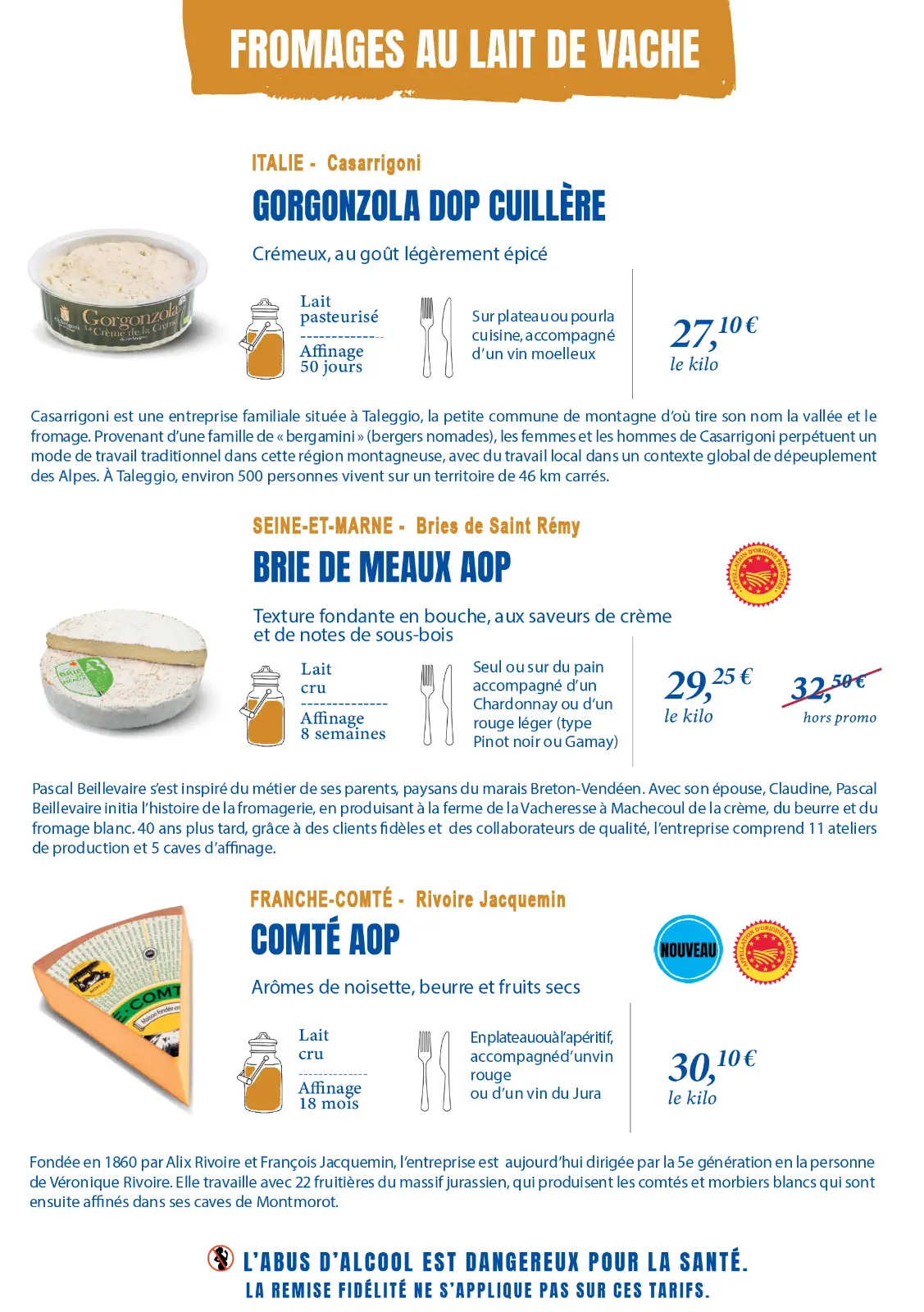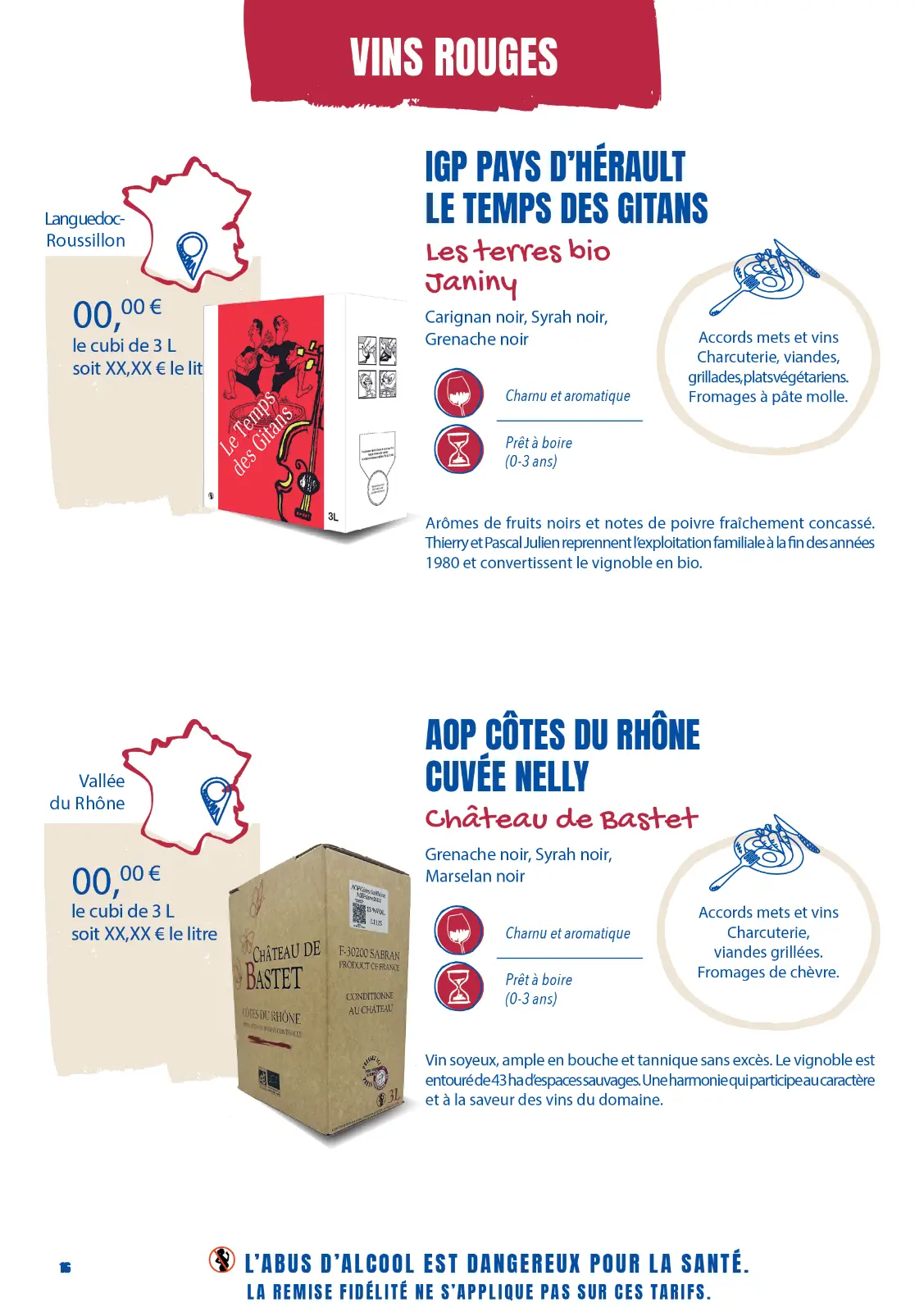 Notre sélection complète de vins et de fromages. La plupart sont en promotion, profitez-en !
