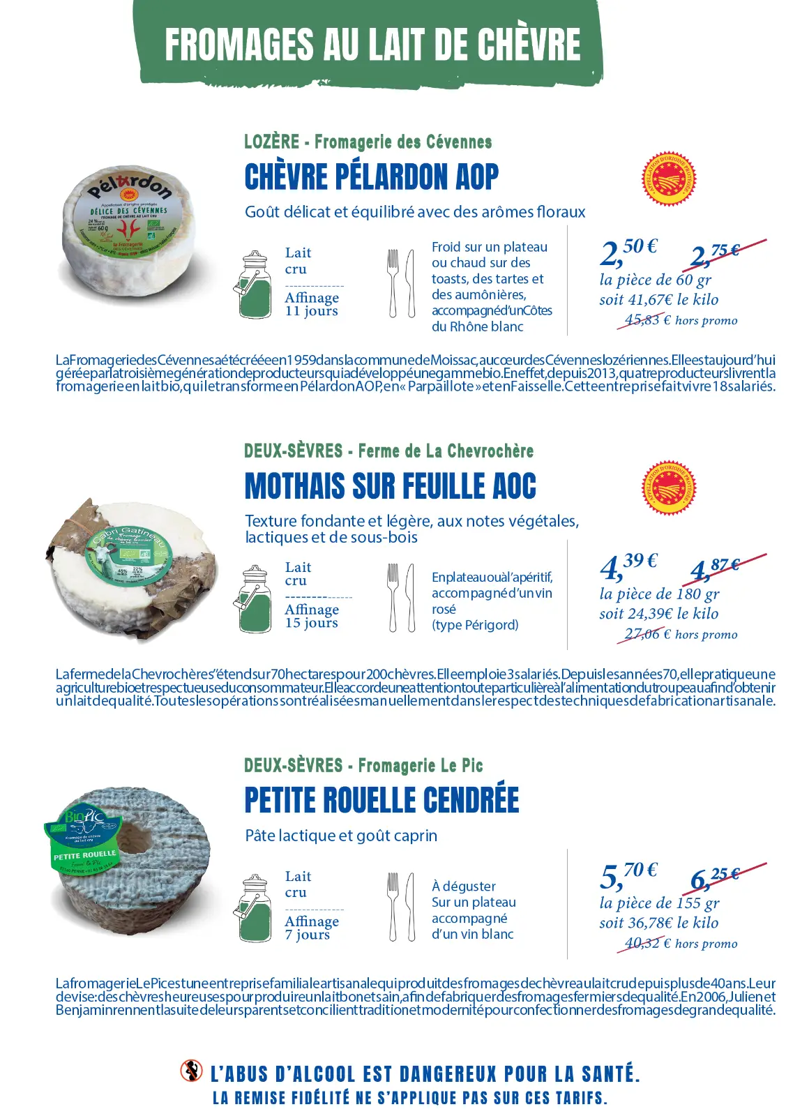 Des fromages bio élaborés par nos fromagers engagés.