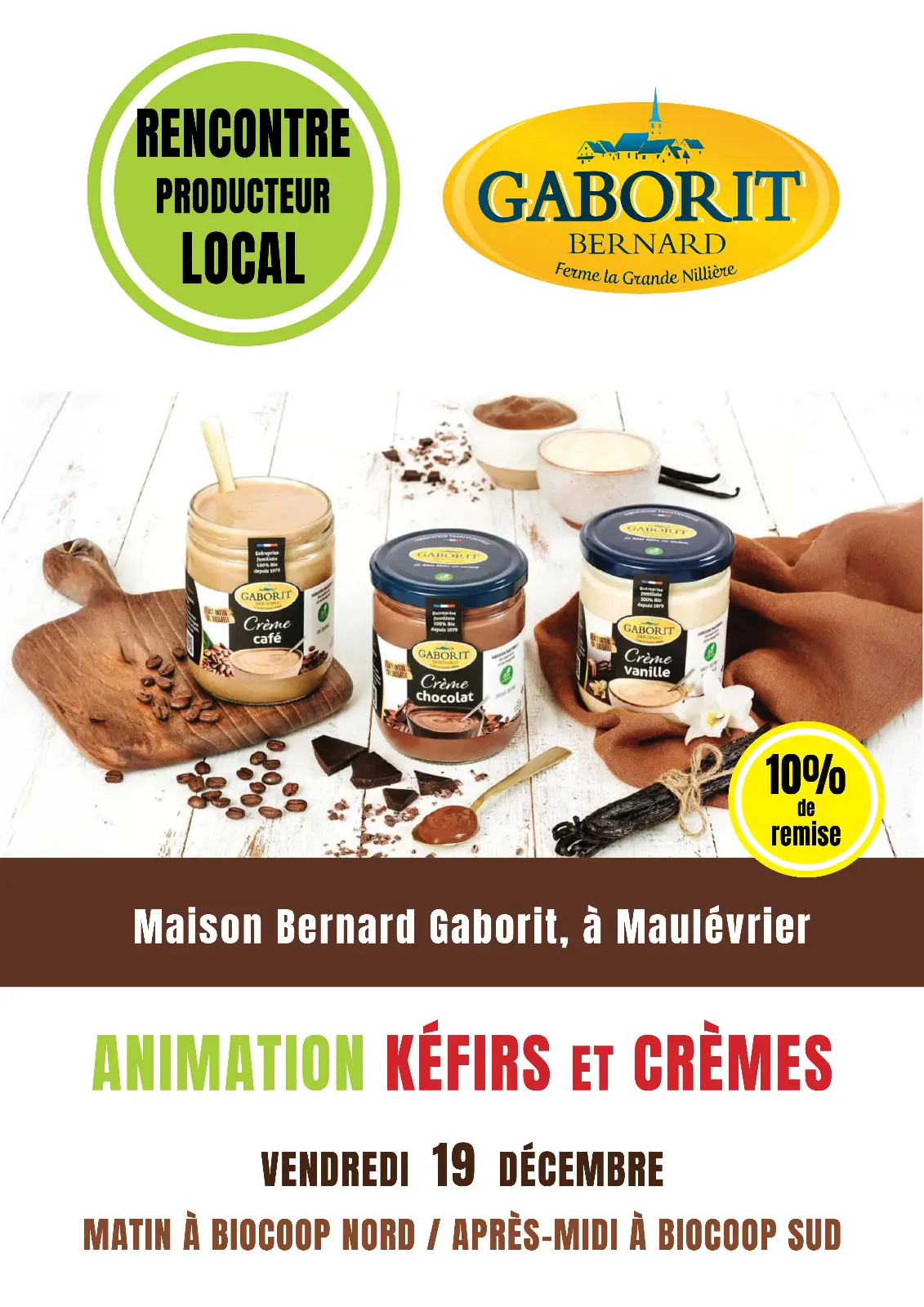 La Maison Gaborit sera présente aux magasins bio Biocoop Cholet Sud et Biocoop Cholet Nord le vendredi 19 décembre pour faire déguster :